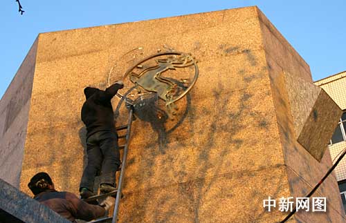 下午四時三十分許,記者在石家莊市和平西路三鹿集團總部看到,兩名工人開始拆除門口警衛(wèi)室旁東西方兩側(cè)的“三鹿”標志。總部門口“石家莊三鹿集團股份有限公司”的字樣已經(jīng)被拆除,只留下模糊的痕跡依稀可辨。