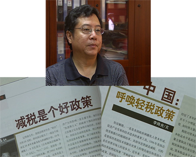 李煒光,是天津財經大學財政學科首席教授,從2006年他就開始呼吁減稅,在多家媒體上發表了《減稅是個好政策》、《中國呼喚輕稅政策》等一系列文章,在他看來,民眾親身感受到的稅收負擔已經是一種“稅痛”。