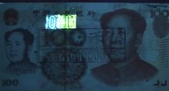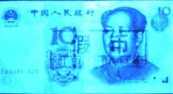 經(jīng)過處理的假鈔紙張的熒光反應(yīng)