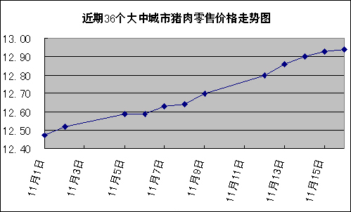 中新網11月19日電 國家發改委網站消息稱,據國家發展改革委價格監測中心監測,上周(11.12-11.16,下同)全國36個大中城市豬肉(精瘦肉)集市平均零售價格每500克為12.89元,比上期(11.5-11.9,下同)上漲2.06%。