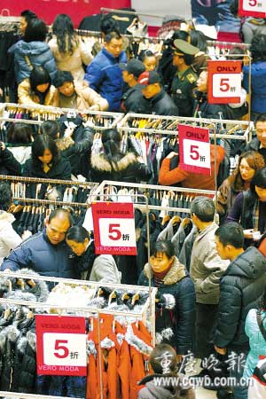 解放碑三日狂購活動昨日落幕。相關百貨商場稱,元旦期間銷售出現不同程度井噴,其中一福建男子兩天時間花了22萬元買化妝品。