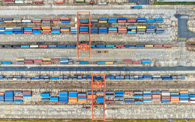 航拍江西贛州國際陸港 雨后初晴正繁忙