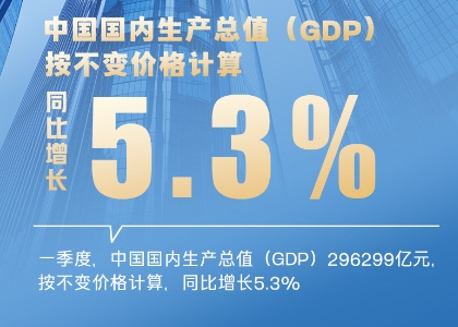 一季度國內生產總值296299億元(人民幣),按不變價格計算,同比增長5.3%,比上年四季度環比增長1.6%。 [更多]
