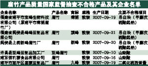 國家質(zhì)檢總局日前對50家企業(yè)生產(chǎn)的50種腐竹產(chǎn)品進(jìn)行監(jiān)督抽查,產(chǎn)品實(shí)物質(zhì)量抽樣合格率為96.1%,發(fā)現(xiàn)有3款腐竹違規(guī)添加禁用的“吊白塊”,另外還有兩款腐竹使用禁用的防腐劑山梨酸。食用含吊白塊的食品會引起過敏、腸道刺激等不良反應(yīng),嚴(yán)重者可產(chǎn)生中毒,令腎臟、肝臟受損。