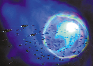 生活著游牧民族 除了在各個星球上土生土長的生物外,霍金還相信宇宙間存在著漂浮的生命體,成群結(jié)隊地游離在星球與星球之間,屬于外星生物中的“游牧民族”。它們會以人類難以想象的技術(shù)飄進(jìn)“蟲洞”,霍金認(rèn)為,這些生物可能用猶如行星般大的“收集器”吸收各個星球的輻射能,進(jìn)而獲得能撕破“蟲洞”穿越時空的巨大能量。
