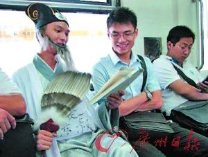 近日,一名青年男子穿白色古裝,臉上黏著灰白胡子,手持鵝毛扇,扮作諸葛亮出沒于北京地鐵,繁華鬧市中,異常“拉風”并迅速在網上躥紅。