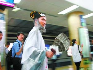 一位還算眉清目秀的年輕男子打扮成諸葛亮的樣子,在地鐵里忽而吟誦,忽而大笑,做出種種引人側目的動作。這是最近風靡網絡的又一個“神秘人物”。如此裝扮卻為何?是崇拜古人?是有病?或者干脆就是網絡推手在炒作?由于這位“亮叔”手中拿著一本剛上市的新書,網友們懷疑最后一種的可能性最大。
