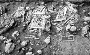 2003年到2006年,黃萬(wàn)波與法國(guó)科考隊(duì)在龍骨坡發(fā)現(xiàn)了一個(gè)3平方米左右的化石層。重疊堆積著大量的動(dòng)物前后腿化石,有明顯的石器砸削痕跡,就此判斷有人類(lèi)活動(dòng)。