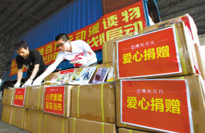 6月3日下午,廣東省支援地震物資中心迎來了一批災區急需的特殊物資——價值百余萬元的動漫圖書及雜志。動漫類圖書是深受青少年兒童喜愛的讀物,有關方面希望通過對動漫圖書的捐贈,讓他們重新找回屬于自己的童真,為災區青少年兒童帶去快樂和心靈上的慰藉。