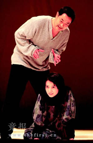 “這是我自己的上衣、林兆華的褲子和皮鞋。”扮演王子的濮存昕身穿寬大的毛衫、深色休閑褲,他指著這身衣服說,“這就是劇中的服裝。沒有什么王子、公主的服裝出現,我們穿得跟現代人差不多。”