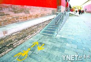 為迎接奧運 北京各著名文物保護景區投資修建無障礙設施 原定奧運結束后應拆除 但游客希望保留———