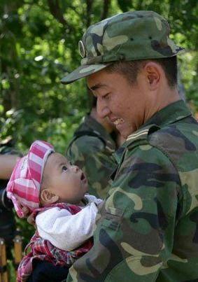在天涯論壇上出現一張感人的圖片。一名抗震救災的兵哥哥,面帶溫柔注視著懷里的嬰兒。照片中的男主角已成為眾多女孩心中的“白馬王子”。