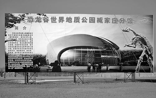 在諸城市龍都街道庫溝村村北,鐵絲網圍成的發掘工地現場,各種規劃圖和效果圖豎立在顯眼處。工作人員告訴記者,這里將建成恐龍谷世界地質公園,而在三四里地外的臧家莊村村北,將建成恐龍谷世界地質公園臧家莊分館!暗綍r候從市區的恐龍博物館乘船,沿著濰河可直接到達這兩個地質公園 ,既可以看到修葺一新的展館,也可以看到保留下來的部分考古發掘現場!