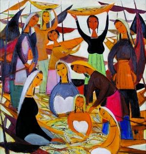 拍賣現(xiàn)場(chǎng),《漁獲》作品估價(jià)是300萬至350萬港元,結(jié)果被一亞洲藏家以1634萬港元拍得。這一成交價(jià)不僅位于此場(chǎng)拍賣首位,且再次刷新了畫家個(gè)人世界拍賣紀(jì)錄。而成交價(jià)位于第四的朱沅芷的《最后晚餐》也以602萬港元打破畫家個(gè)人世界拍賣紀(jì)錄。