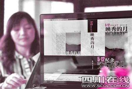 “你好,我是周紅令。”下午2點(diǎn),周紅令帶著筆記本電腦出現(xiàn)在記者面前,她蓄著優(yōu)雅的長(zhǎng)卷發(fā),素雅的條紋襯衫剪裁合身。在成都鬧市,她有兩家玉石門市,是個(gè)有些小資的女老板。周紅令打開(kāi)電腦,已經(jīng)排好版的作品《映秀的月》快速閃過(guò),一張地震時(shí)渾身是泥的照片,讓她有些羞赧。