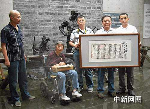 中新網成都7月7日電 (吳志維 楊杰) 今年7月7日是盧溝橋事變72周年紀念日。7日上午,臺兒莊滕縣保衛戰鄒紹孟之遺腹子鄒汝祥來到建川博物館,將《滕縣保衛戰英烈名單》、家書復制件捐贈給該館珍藏。