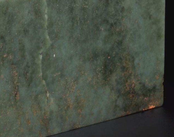 李教授現(xiàn)為江蘇省書畫鑒定小組主任委員,他潛心研究篆刻三十多年,他向記者介紹:清代乾隆二十五年后時玉器制作進入玉器史上的鼎盛期,而在玉器質(zhì)地的選料上,都是由新疆大吏搜羅開采頂級的上品而充貢內(nèi)廷。而且皇帝玉璽成品都很規(guī)整,幾乎做到玉璽無筋、無柳、無瑕,用于制作玉璽都為最好的肉質(zhì),開料與玉璽制成的比率很低,原料的浪費極大,為的就是選料的純靜,美玉良工以確保玉璽的精美度,而此次拍賣的乾隆“八徵耄念之寶”青玉璽,目鑒便知玉質(zhì)上有大片的柳絮紋。(圖一)玉質(zhì)當屬普通青玉料,皇家玉璽是不會選這種檔次的玉料制作的。