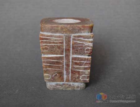 已發掘的4座規格較高的出土玉琮、玉璧的墓葬都分布于北片墓地的東北部。這些墓葬中尤其重要的是16號墓(南部殘),它出土了玉琮和有刻劃符號的玉璧。該件玉璧直徑24.7厘米,上面刻劃著兩個符號,一個位于玉璧正面,另一個位于側邊緣。這是首次經正式考古發掘出土的良渚文化有刻劃符號的玉璧,也是迄今為止省內考古發掘出土的直徑最大的良渚文化玉璧。21號墓出土的玉琮上紋飾刻劃得較粗糙。