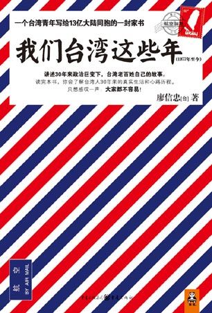 “我試著通過我的成長歷程,將這些社會事件結(jié)合起來,對于這些社會事件及社會變遷,我盡量不去做評論,只將它們很客觀地記錄下來。”廖信忠表示,“我不敢說我寫的這些文字就完全代表了臺灣人的想法,但若您看了能對臺灣多一分了解和理解,那我就萬千感動了。”