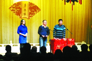 老孟到廣德樓不是來聽相聲的,他沉甸甸的電腦包里裝著一份合作意向,他一手操持的“山寨春晚”有了新進展,藝馨相聲社將幫助“山寨春晚”進行節(jié)目的整體運作,包括語言類節(jié)目的策劃包裝。昨晚,在一段相聲結(jié)束后,老孟和藝馨相聲社的總經(jīng)理孟陽走上舞臺,在200多名觀眾的見證下,孟陽從老孟手里接過了合作意向。頗具戲劇性的是,老孟剛巧站在逗哏的位置,孟陽站在捧哏的一邊,一唱一和,缺一不可,今年的“山寨春晚”有戲了?