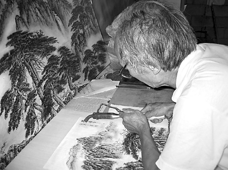 “看著簡(jiǎn)單,烙起來(lái)難。”南陽(yáng)市烙畫(huà)廠廠長(zhǎng)李哲說(shuō),烙畫(huà)亦稱烙花、燙畫(huà)、火筆畫(huà),是以溫度在300攝氏度至800攝氏度的烙鐵代筆,利用炭化原理,不施任何顏料,在竹木、宣紙、絲絹等材料上取其相應(yīng)溫度進(jìn)行勾、擦、點(diǎn)、烘,巧妙自然地把繪畫(huà)藝術(shù)的表現(xiàn)技法與烙畫(huà)藝術(shù)融為一體,形成自己獨(dú)特的藝術(shù)風(fēng)格。用這種方法創(chuàng)作出的書(shū)畫(huà)作品為茶褐色,古樸典雅,精美絕倫。
