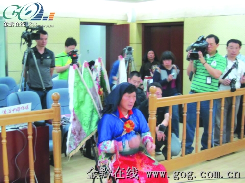 昨日的庭審現場,兩位全身披掛地戲服飾的地戲演員詹學彥、曾玉華作為證人出庭作證。兩人證明了當初受《千里走單騎》劇組邀請,參加拍攝了“千里走單騎”、“戰潼關”兩幕安順地戲的事實。詹學彥還委曲地說,影片上映后,他被許多屯堡人罵他“賣祖宗”。