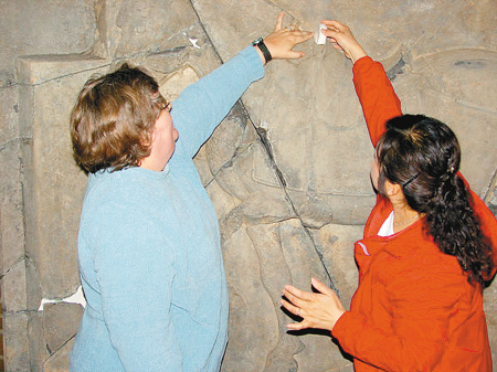 賓夕法尼亞大學博物館首席文物保護專家琳·格蘭特女士這兩天很興奮,一是中國文物修復專家的到來,帶來了東方文物修復理念,二是中國專家帶來的“昭陵六駿”殘塊石膏模型,竟與二駿中拳毛騧馬鞍斷裂部分非常匹配。格蘭特女士激動地對記者說:這真是難以置信的成果,“二駿”來到美國快一百年了,它身上掉的另一塊石頭又找到,太讓人高興了。