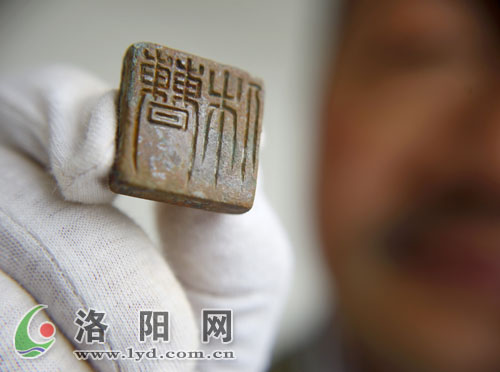 后室西南角的地面上,一方銹跡斑斑的印章赫然“躺”在地上。“我們當時激動得要命,考古中能得到文字性的東西,簡直就是驚天發現!”李光夫笑著說,當時,大家小心翼翼地將印章用密封袋保存,然后給領導打電話“報喜”。