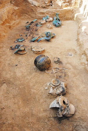 3月15日至5月18日,在省文物考古隊(duì)領(lǐng)隊(duì)楊帆研究員的帶領(lǐng)下,工作人員在西老硐坡發(fā)掘了15座漢墓,挖出了400余件(套)文物。“這是一個(gè)巨大的漢墓群,總面積2萬平方米,面積之大實(shí)屬罕見。”楊帆說,這個(gè)漢墓群發(fā)現(xiàn)比較早,今年已是第四次發(fā)掘。因?yàn)橛昙炯磳砼R,考慮到安全因素,野外發(fā)掘?qū)⒁Y(jié)束,現(xiàn)在專家將在室內(nèi)對文物進(jìn)行修復(fù)。剩下的8000多平方米,將在國慶節(jié)以后再次發(fā)掘。
