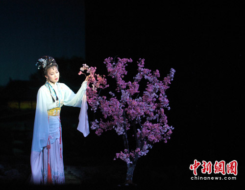 中新網武漢5月25日電 (鄒浩)“晴雯撕扇”、“寶玉挨打”、“黛玉葬花”……朝鮮大型歌舞劇《紅樓夢》5月25日晚在湖北劇院進行正式演出前的試演。