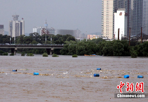 中新網吉林7月28日電 (許斯綺)7月28日,吉林省永吉縣境內發生特大洪水,永吉縣經濟開發區新亞強化工廠一批裝有三甲基一氯硅烷的原料桶被沖入松花江中,事件發生后,吉林省迅速采取有力措施,在松花江沿途設置8道防線進行攔截。吉化公司已派出200多人組成的專業搶險隊伍協助當地政府打撈。