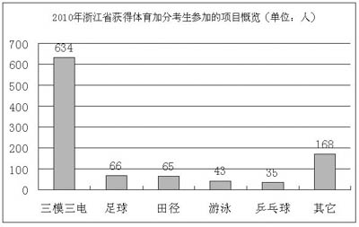 統計還發現,田徑、籃球、足球三項加分考生在各地市分布比較平均,而健美操、無線電測向和定向越野卻集中在成都、綿陽和南充3市,共為500人,占這三項加分總人數的78%。