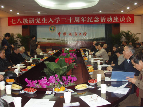 在12月6日和12月8日分別于武漢和北京舉行的兩個座談會上, 回到地質大學母校的1978級研究生董振興,鄢泰寧, 楊昌明, 金鳴峰,韓紹緒, 岑況等著名教授和學者與此地大的一些著名老教授紛紛發言, 表達自己對鄧小平親筆批示的敬佩之情。表達自己對文革后中國研究生教育發展30年來蓬勃發展的充分肯定。(勞荊 / 地京 / 地漢)