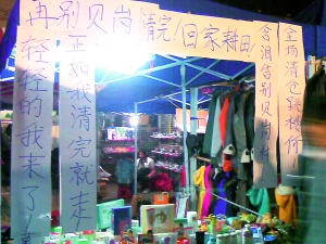 只見高高掛著的白色橫幅“再別貝崗,清完回家耕田”幾個字格外醒目,再加上“輕輕的我來了,正如我清完就走”、“含淚告別貝崗村,全場清倉跳樓價”兩幅對聯。而“靈堂”下的“祭品”卻是各種名牌護膚品。對此,不少人學生表示很迷惑:“怎么是白色對聯呀,應該用紅色才對吧?”隔壁攤位的老板極盡挖苦地說:“好像死了一家人,等著些錢買棺材似的。”而該“靈堂”的“堂主”,竟是來自華工的高才生,“因為沒有機會外出去實習,我們就通過這樣的方式來磨練自己。我們的樣子都這么慘了,大家一動心就會買的。”兩個男生強調,做市場營銷這一行,需要承受很多異樣的目光和心理壓力,這對他們來說是極大的鍛煉。