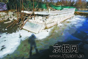 昨天,市文物局有關負責人趕赴北大現場了解情況,經過勘測,認定未名湖石舫舫首局部石構件塌落的主要原因是石舫本身的陳舊性斷裂在融凍作用下造成的。據介紹,事件發生前,北京大學已將石舫的修繕列入計劃,沒想到春節期間氣溫回升很快,在未名湖冰凍消融的過程中意外發生了這一事件。