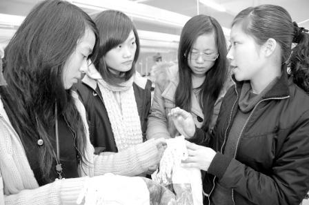 去年10月成人高考正式通過后,學(xué)校讓她到學(xué)院本部與紡織品檢驗與貿(mào)易專業(yè)的同學(xué)一起,隨班上課。學(xué)院還聘請她為學(xué)院輔導(dǎo)員、兼職教師,為同學(xué)們上實踐課,并享有課時補貼。