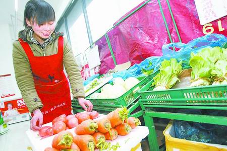 昨日下午,在鄭州市圣菲城旁的“咱地里”超市內,仍是學生打扮的姜茵和雇的幾名工人一起忙著理貨、接待顧客,一點沒有老板的架勢。