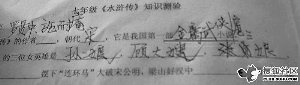 發帖者稱:最近在中學見習,趕上學校在考關于《水滸傳》文學常識的卷子。幫老師批卷子的時候,孩子們超級富有想象力的答案囧翻了我們一屋子人。