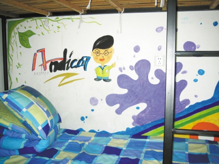 嫌寢室白墻太單調 大學生在床邊涂鴉(圖)