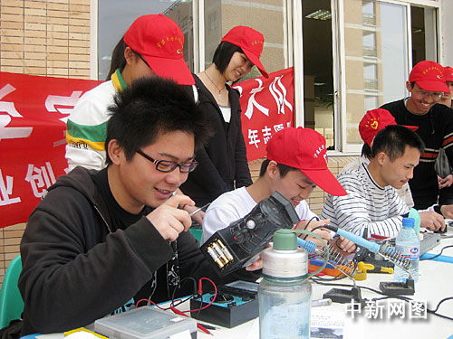 4月26日,浙江紡織服裝職業(yè)技術(shù)學(xué)院大學(xué)生就業(yè)創(chuàng)業(yè)協(xié)會(huì)組建青年志愿隊(duì),和寧波大學(xué)理學(xué)院家電維修社聯(lián)合開(kāi)展維修小家電活動(dòng)。他們?cè)谛@內(nèi)設(shè)攤,用一天時(shí)間免費(fèi)為同學(xué)們修理電風(fēng)扇、電吹風(fēng)、MP3等各種小家電200余件。
