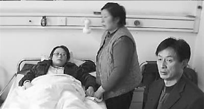 省人民醫院楚康樓康復科病房內,雷良霞左腿上裹著塑料支架,躺在病床上起身吃飯仍需父母攙扶。