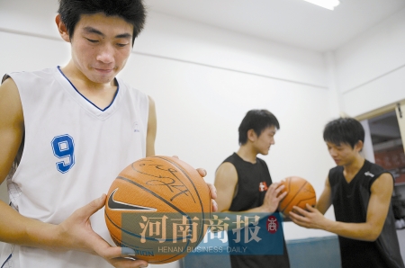 喝過茶,四個(gè)大男孩算是正式投入科比門下。隨后,他們送上事先準(zhǔn)備好的拜師禮:信陽毛尖和一對中國結(jié),中國結(jié)上印有科比全家福照片。洋師傅大喜過望,回贈(zèng)了幾位“大弟子”簽名籃球和文化衫。如今這些已成了鄭大籃球隊(duì)的寶貝。