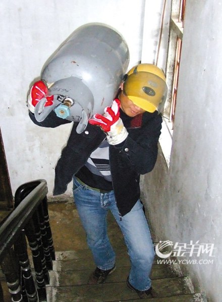轉正沒希望 扛起煤氣罐