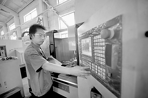 7月27日,蘭州職業技術學院機電工程系學生在學習操作數控機床。