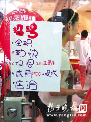 記者以應聘者身份向店主咨詢,被告知“已經招滿了”。店主說,貼出招聘后,每天有很多人來應聘,其中不乏南大、東大的學生,甚至還有研究生。“如果你想應聘,留下電話晚上回去等消息吧,我們還要面試。”