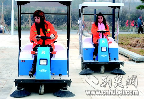 三名女大學(xué)生到崗后,一直工作在環(huán)衛(wèi)第一線。年齡稍大的付莎莎目前已當上了班長,帶著早、晚班兩個小隊24人。記者采訪時,付莎莎在布置完晚班的任務(wù)后,就拿著鐵夾子、鐵撮箕和同事一起風(fēng)風(fēng)火火地干起活來。年齡稍小的羅瑛、付琴菲,前幾天被抽調(diào)出來,主要負責(zé)駕駛新添置的電動清潔車。