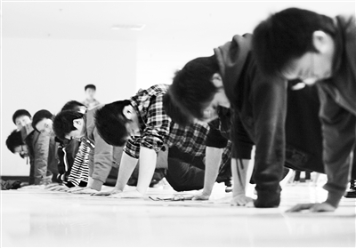王沖說,做俯臥撐對女生挑戰大些,而穿珠對男生的挑戰更大。