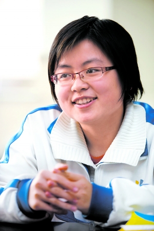 每天晚上看完央視《新聞聯播》就去學習,一直學到11點半,這是蘭天瑩雷打不動的習慣,而且一堅持就是五六年。不過,她并不是兩耳不聞窗外事的書呆子。這不,連《蝸居》都關注著呢,“現實題材,寫出了年輕人的困惑和煩惱,大考之后我一定好好看看六六怎么揭露現實生活的,現實生活又是多么殘酷的,郭海藻淪為小三不能一味地批評她,她的出現應該有現實原因的。”真不愧是文科綜合排名第一,蘭天瑩說起當代文學作品來頭頭是道,架在鼻梁上的小眼鏡因為話語的激動也一翹一翹的。