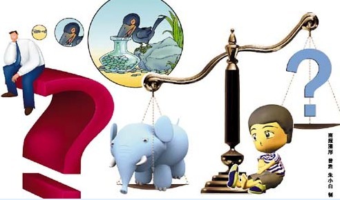 《曹沖稱象》是一篇贊揚(yáng)小孩聰明的文章,五六歲的曹沖就能夠想到用石頭代替大象稱重的方法。同樣是在這本課外教材里,《曹沖稱象》也被改成了雷人的題目,“不用稱石頭的方法,還能想出更好的辦法來(lái)稱象嗎?”