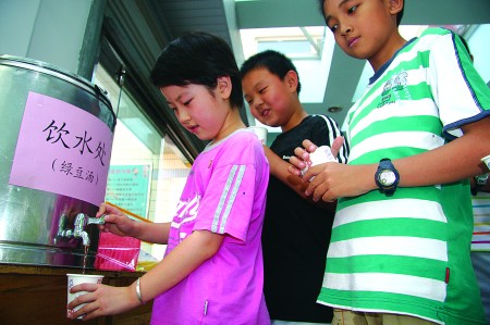 24日,槐蔭區(qū)中小學(xué)校進(jìn)行了本學(xué)期的階段性測試,記者在濟(jì)南市經(jīng)七路第一小學(xué)看到,學(xué)校為學(xué)生們熬好了綠豆湯,學(xué)校衛(wèi)生室為每個教室準(zhǔn)備了藿香正氣水、人丹、清涼油等防暑的藥品,保證學(xué)生安心考試。